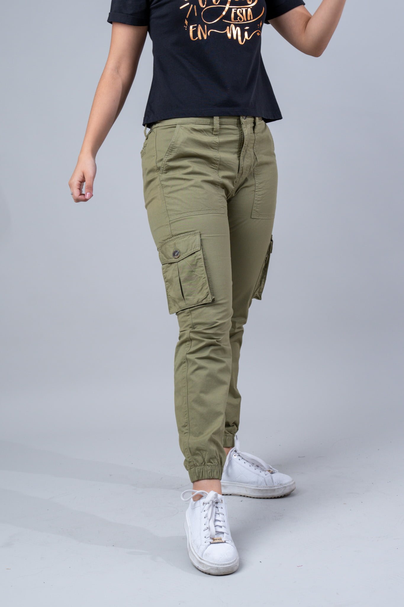 Pantalon Cargo con Bolsillos Sobrepuestos Delanteros y de Costados con Pliegue
