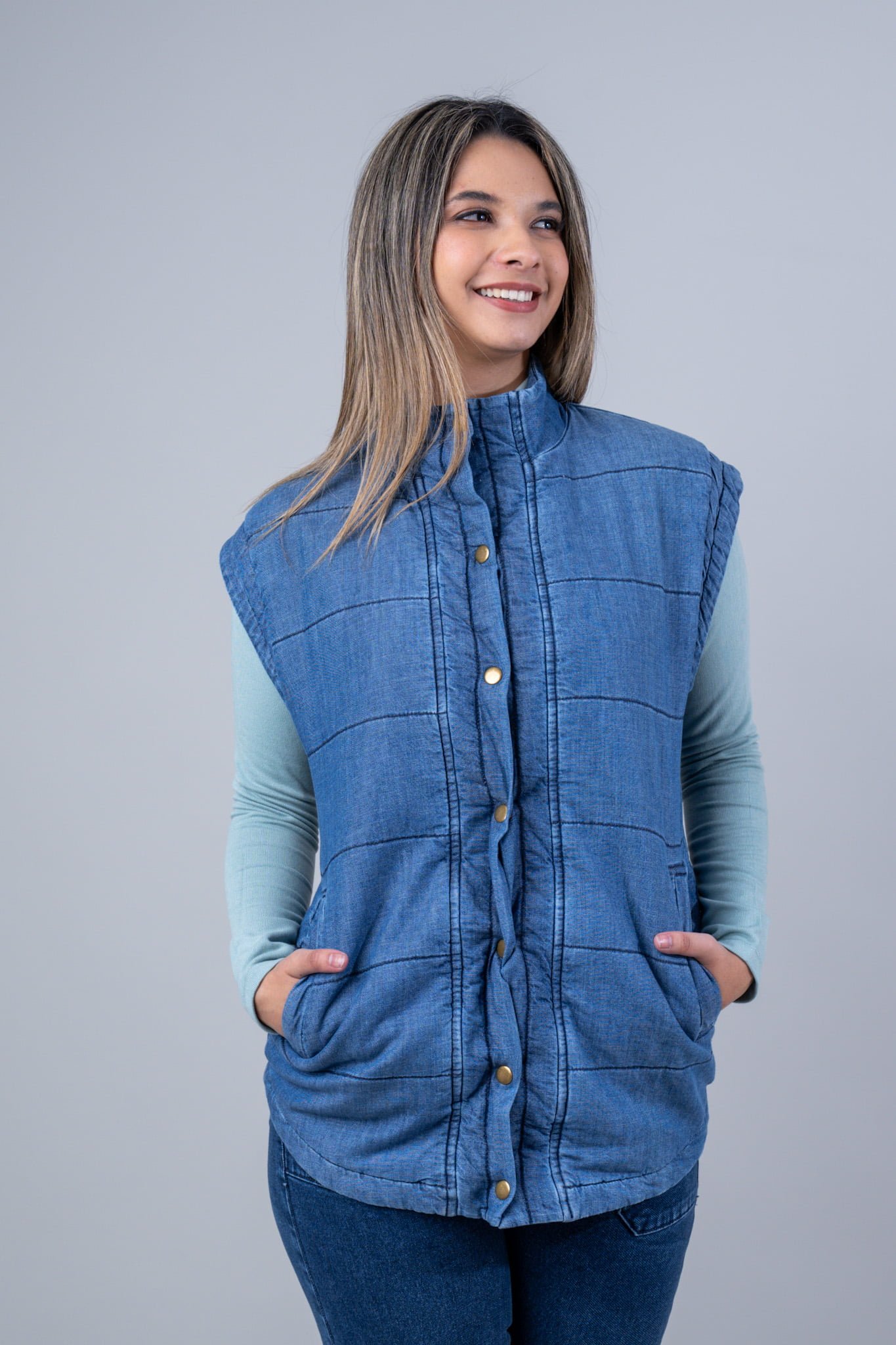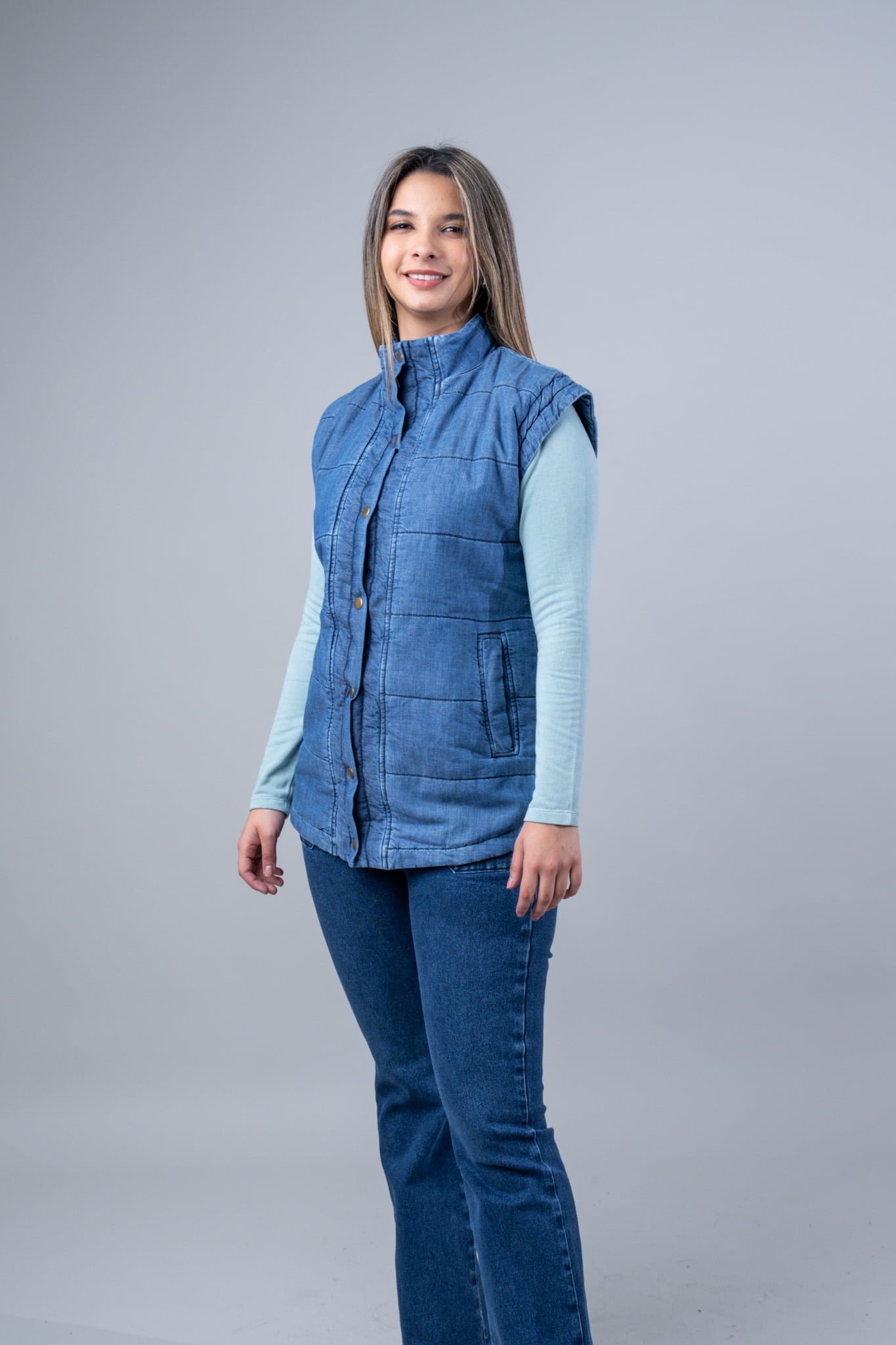 Chaleco Jean Acolchado con Forro y Broches