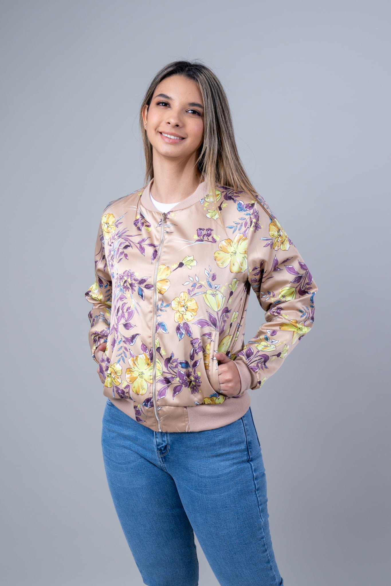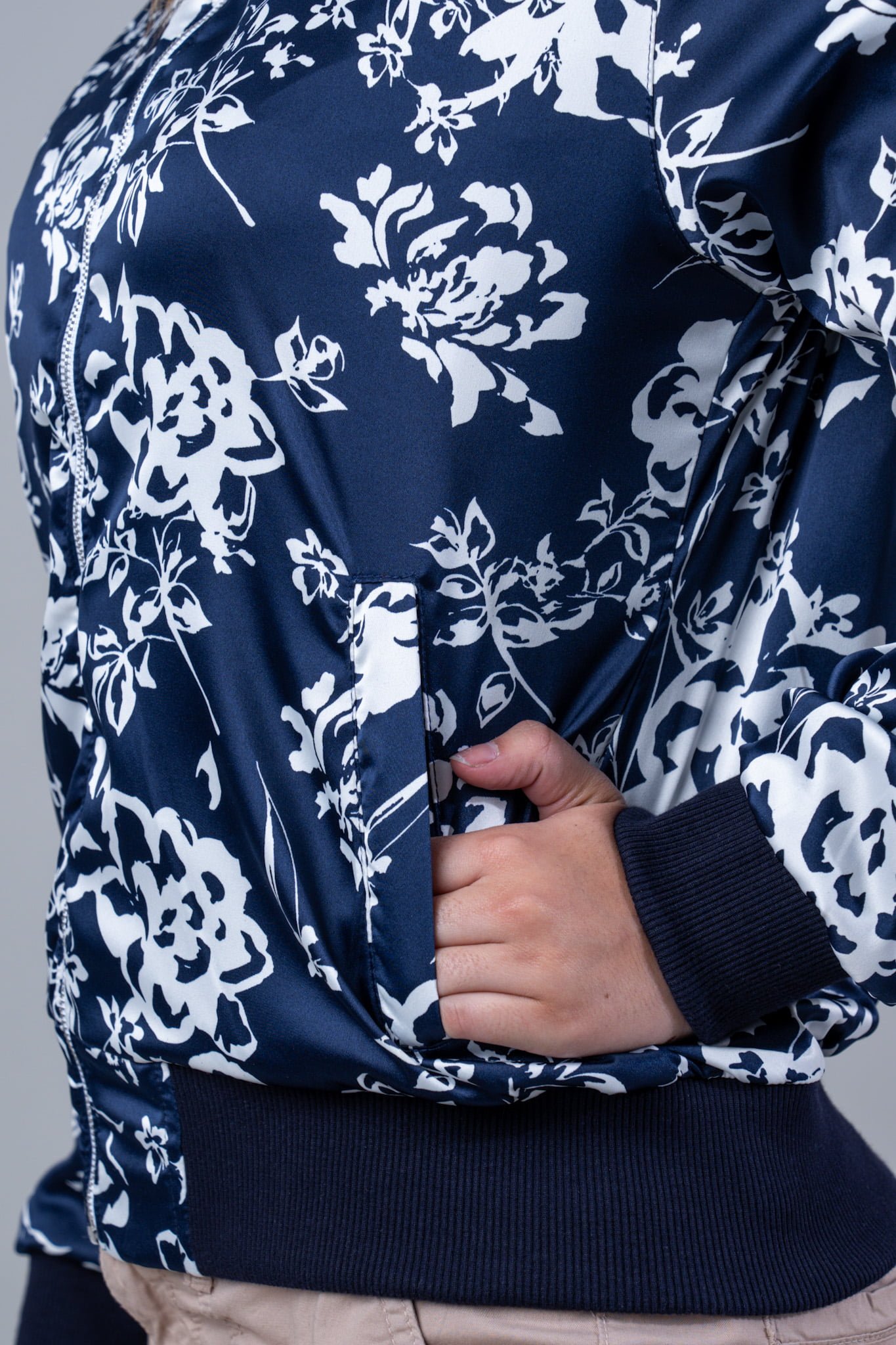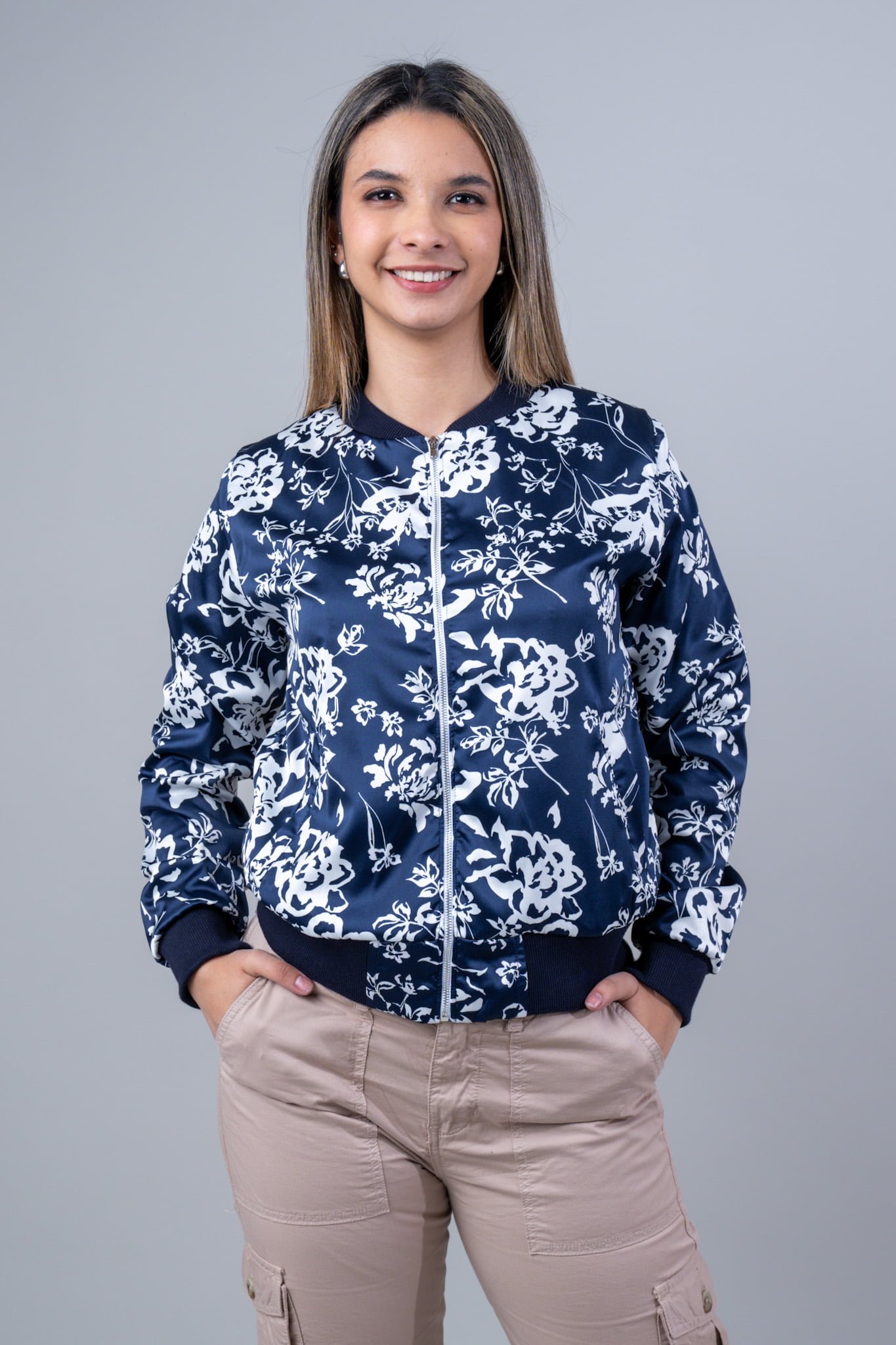 Chaqueta Confeccionada en Tela Satin, con Cierre, Pretina de Rib, Forrada con Boslillos Laterales
