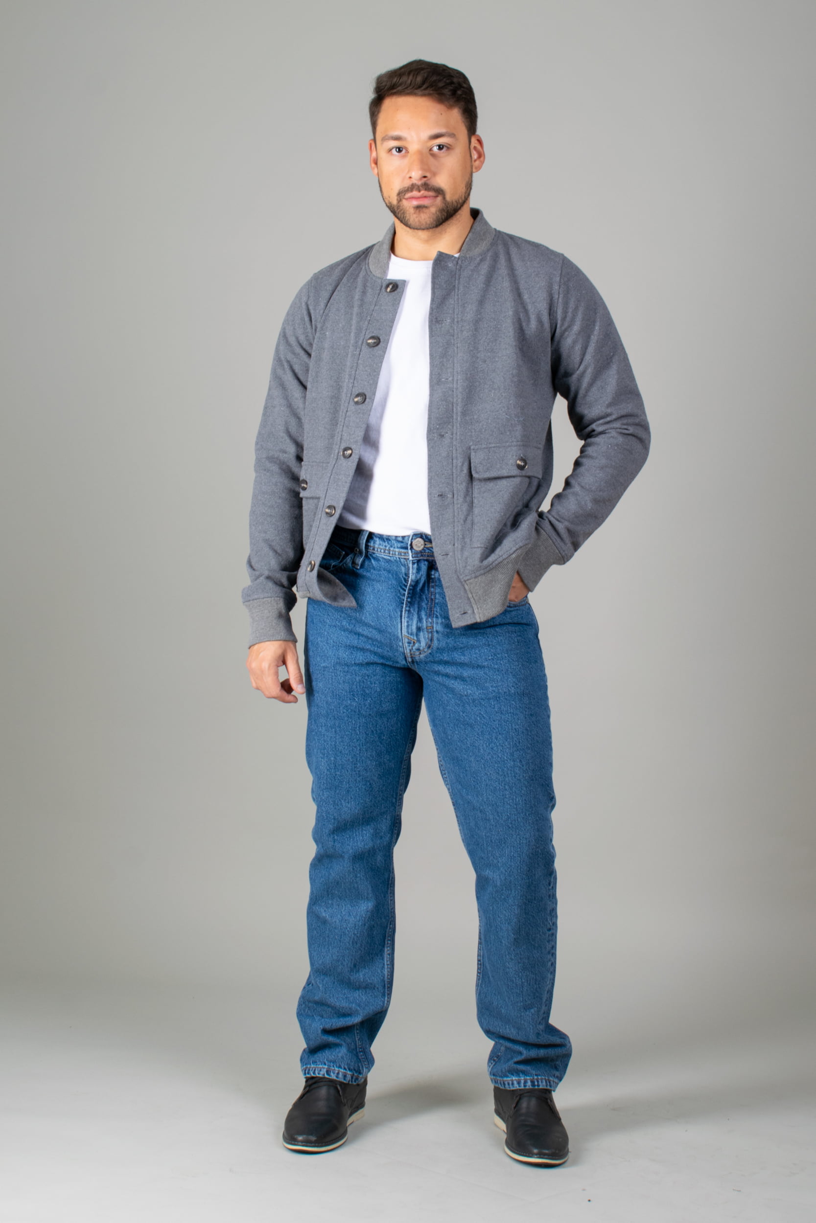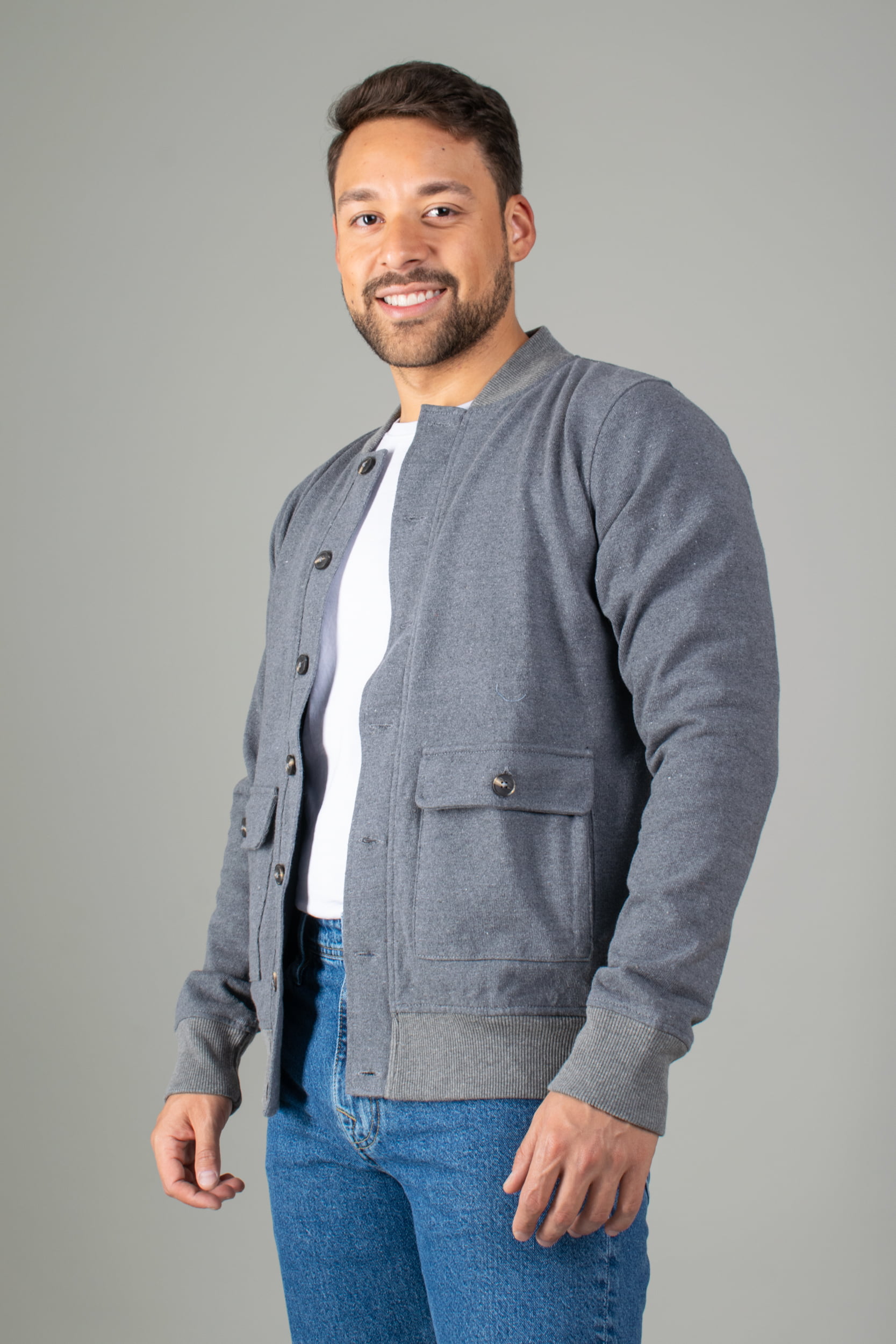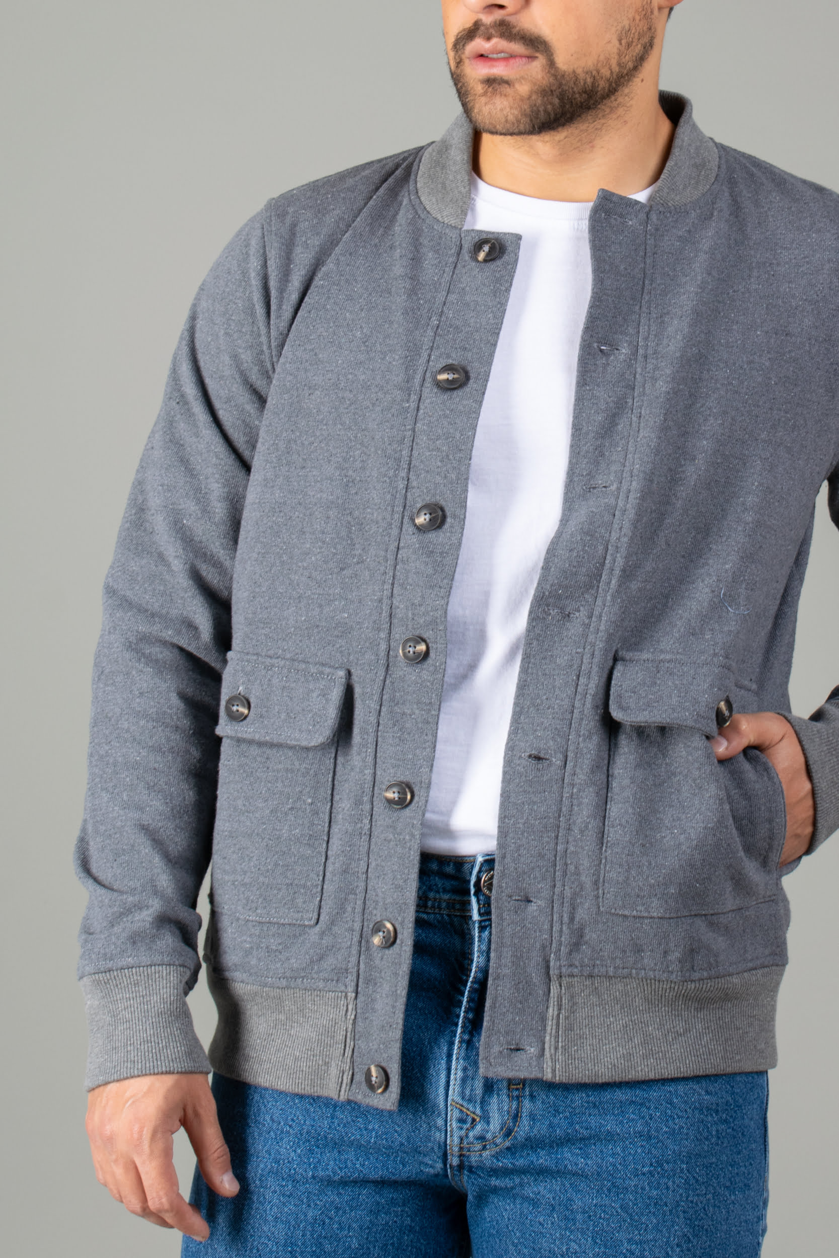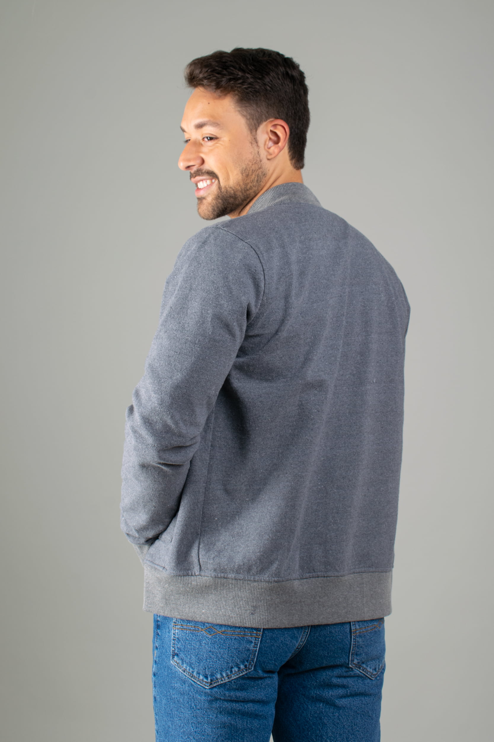 Chaqueta Forrada con Cuello y Fajon de Rib – Plomo